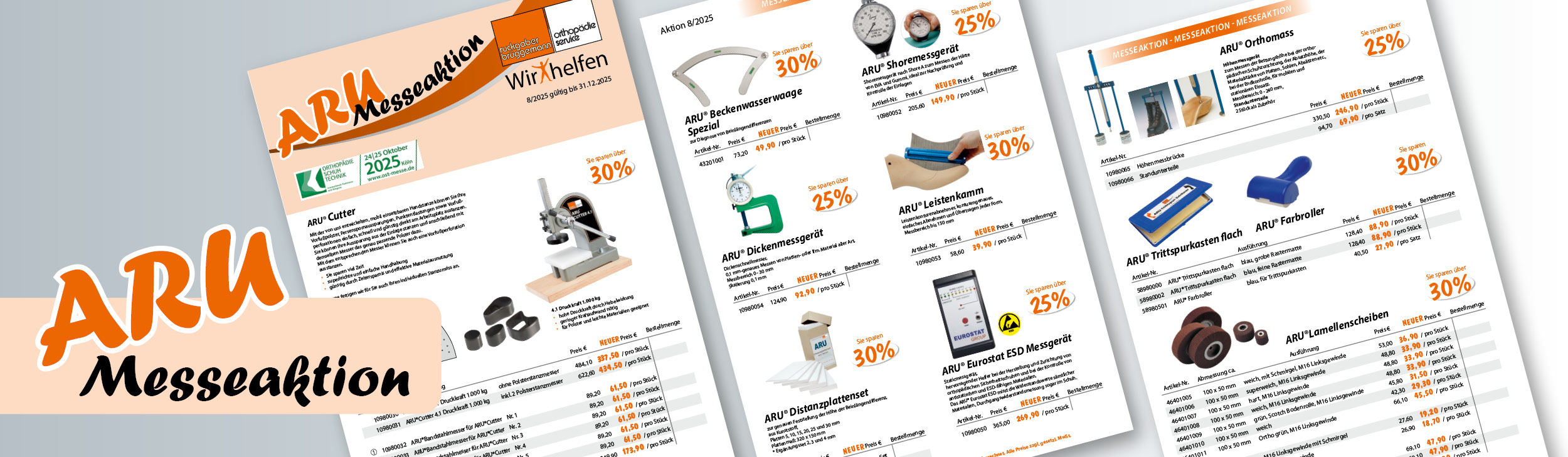 Darüber hinaus finden Sie im Flyer viele weitere nützliche Produkte wie das ARU® Orthomass Höhenmessgerät,